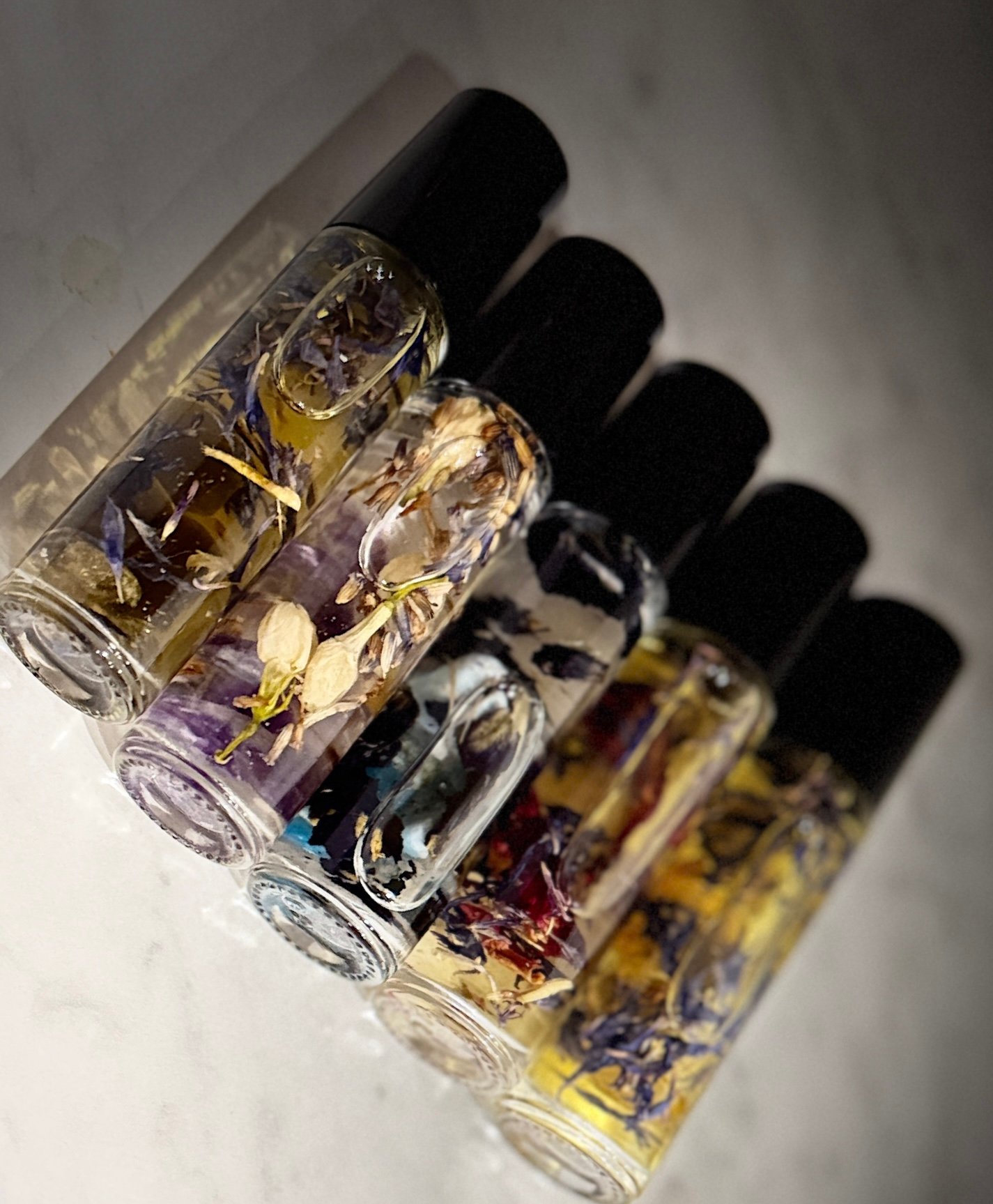Ritual: MCT coconut oil infused quartz dried flowers that intertwine with essential oils to help guide you to your journeys. Manifest within.